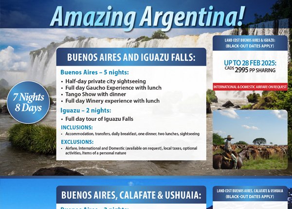 VALIDITY: UP TO 28 FEB 2025 (BLACK-OUT DATES APPLY) Argentina, South America