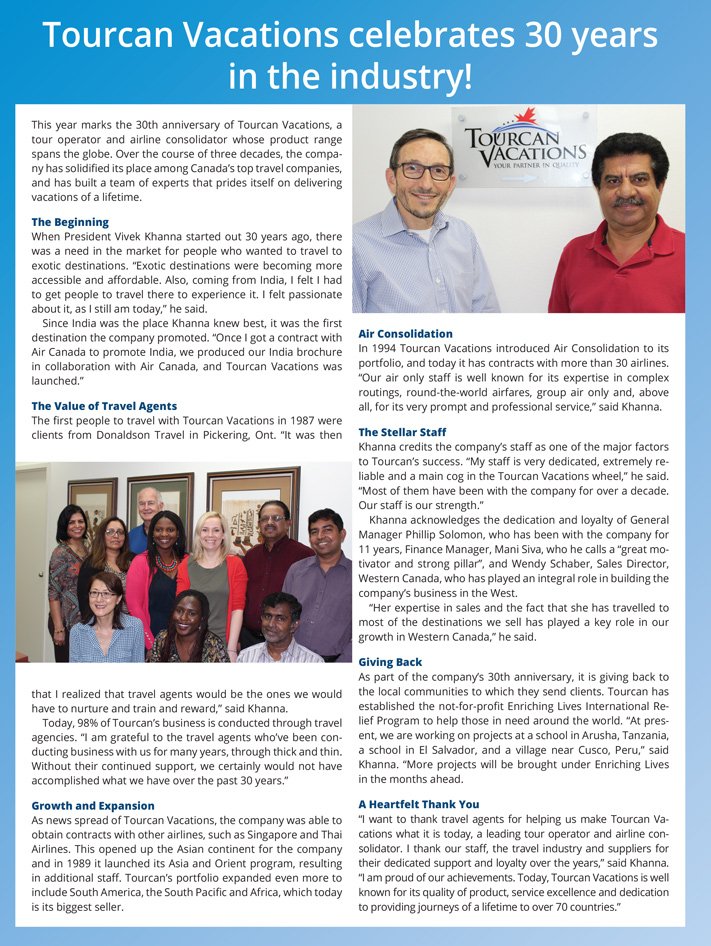 Custom-Built to Perfection, Tourcan Celebrates 30 Years, providing custom crafted tours for their clients’ personal needs. Link to full news article published in PAX Magazine:
