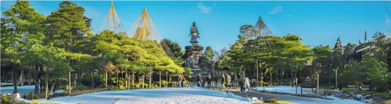 Kanazawa is a historic city in Ishikawa prefecture. Kenrokuen Garden is a beautiful Japanese garden with an area of 11.4 hectares located on the heights of the central part of Kanazawa and next to Kanazawa Castle. Kenrokuen Garden has a big artificial pond, and hills and houses are dotted in the garden. Visitors can appreciate the whole, dropping in at them. The 21st Century Museum of Contemporary Art, Kanazawa as a new-style art museum different in image from conventional art museums was opened in October 2004. The museum exhibits experiment-type contemporary arts that visitors can touch or sit on, and includes zones where visitors can enter free. Both adults and children can experience an excited time in the museum.