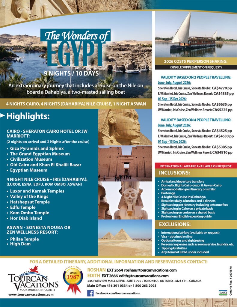 4 NIGHTS CAIRO, 4 NIGHTS (DAHABIYA) NILE CRUISE, 1 NIGHT ASWAN