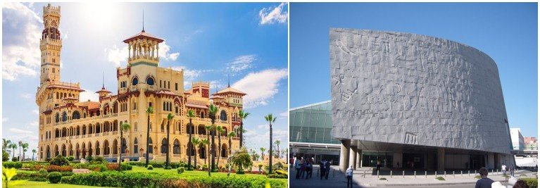 End the day with a visit of Alexandria Library: Shaped like a massive, partly hidden, tilted disc rising up from the Mediterranean, the Bibliotheca Alexandrina evokes the image of a rising sun, a source of light and enlightenment. Bibliotheca was inaugurated in 2002 as a resurrection of the ancient Great Library of Alexandria, which had formed the cornerstone of ancient intellectual life. Aside from a library displaying books on 7 levels that form a “pyramid of knowledge,” the cultural complex also includes other specialized libraries, museums, exhibition areas, education centers, and an international conference center.