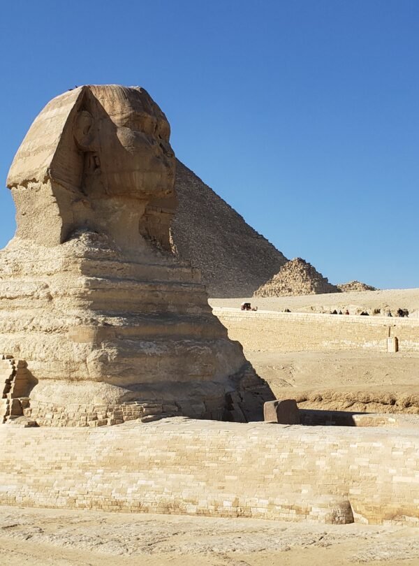 It a site on the Giza Plateau in Greater Cairo, Egypt that includes the Great Pyramid of Giza, the Pyramid of Khafre, and the Pyramid of Menkaure, along with their associated pyramid complexes and the Great Sphinx of Giza. All were built during the Fourth Dynasty of the Old Kingdom of Ancient Egypt, between 2600 and 2500 BC. The site also includes several cemeteries and the remains of a workers village.
